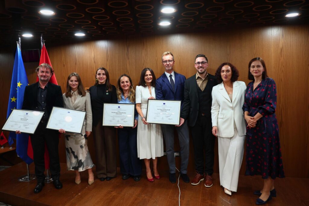 Mbrëmjen e 20 tetorit në “Shtëpinë e Evropës” në Tiranë u zhvillua ceremonia e ndarjes së Çmimeve të Bashkimit Evropian për Gazetarinë Investigative 2025, për të vlerësuar arritjet e gazetarëve që sollën historitë më të fuqishme hulumtuese në Shqipëri gjatë vitit të kaluar.