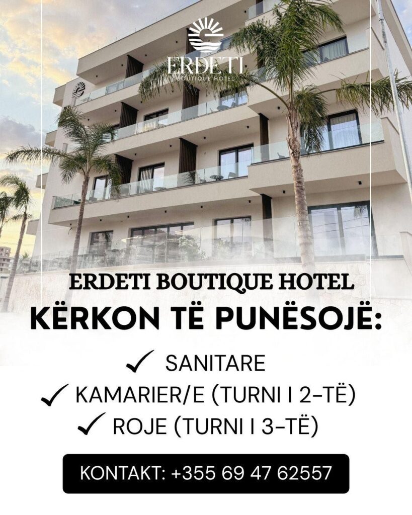 Erdeti Boutique Hotel te Kanali i Çukës në Sarandë kërkon të punësojë: