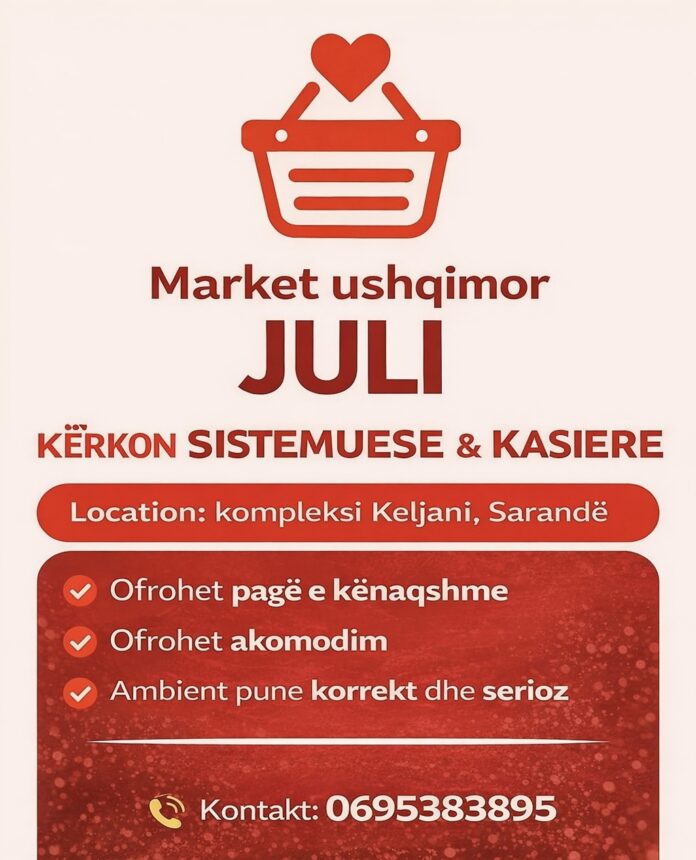 Market ushqimor JULI kërkon të punësojë Kasiere dhe Sistemuese.